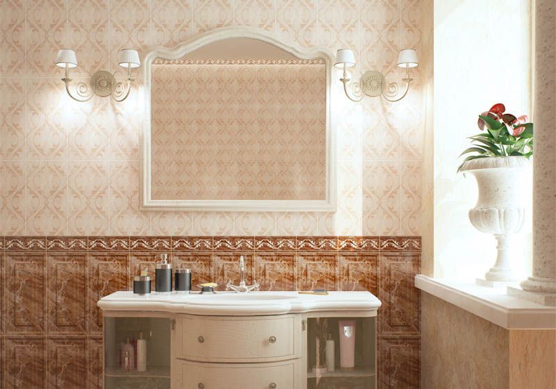 Изящные, витиеватые орнаменты декора на бордюрах, настенных и напольных вставках вносят в интерьер утонченные нотки элегантности и очарования.