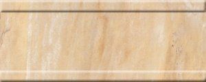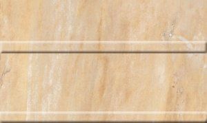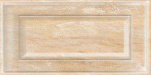 Базовая глянцевая настенная плитка Монплезир-2 от Нефрит-Керамика имитирует поверхность отделочного камня песочного цвета. Под стать ей выполнена и матовая напольная керамика, представляющая собой кассетоны с геометрическим рисунком в виде наборного паркета. В этом же ключе выполнены горизонтальные рельефные бордюры и объемные декоры.