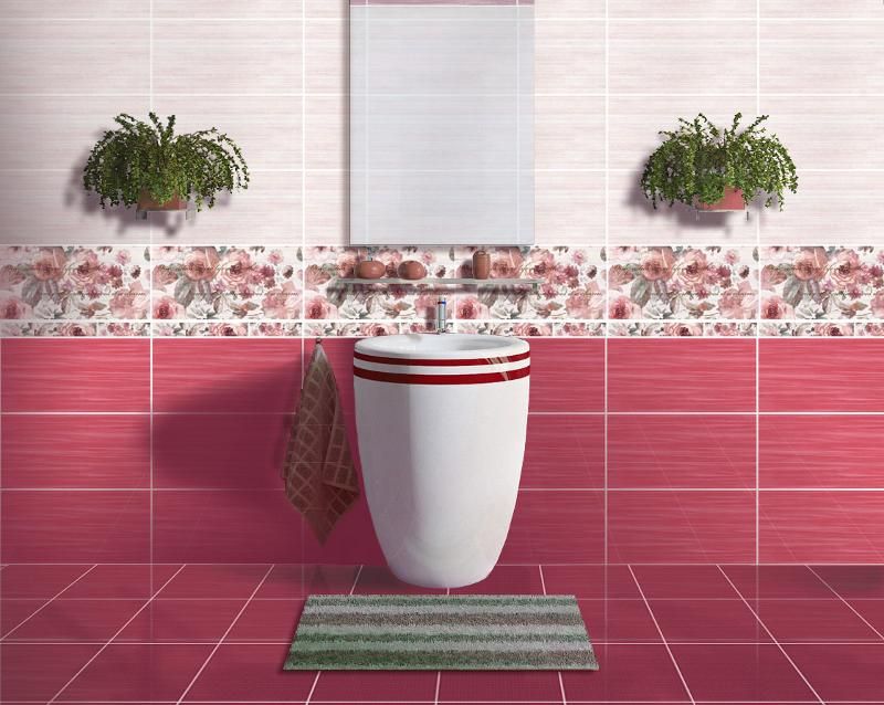 Коллекция керамической плитки для ванной в розовых, лиловых и бордовых оттенках. В коллекцию включены настенная плитка трёх цветов (розовый, лиловый, бордо), бордюр, декор и декор-массив с цветочными мотивами. В качестве напольной плитки для этой коллекции производитель предлагает плитку для пола Фреш, лиловую и бордо.