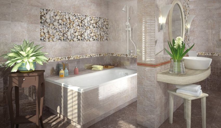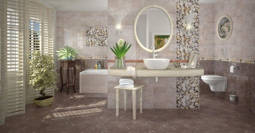 Фото интерьеров комнат, облицованных керамической плиткой Ницца (Nizza) от производителя Опочно (Opoczno).