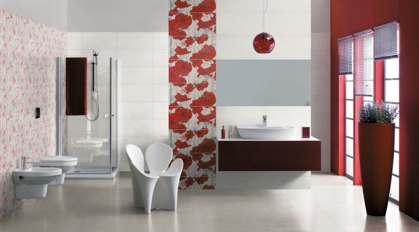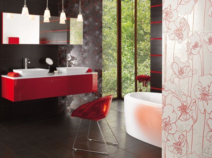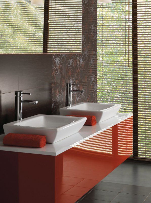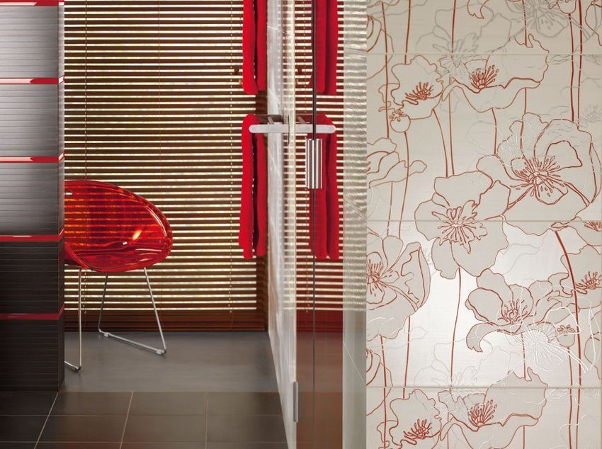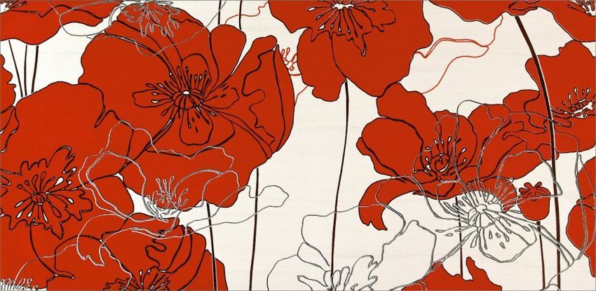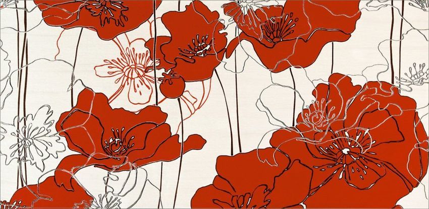 Коллекция выполнена на основе белой глины с матовой поверхностью, стилизованной под дерево в оттенках коричневого цвета. Элементы декорации с растительными мотивами гармонично дополнят интерьер ванной комнаты или кухни. Сочетание белых и красных маков, создает впечатление легкости и воздушности.