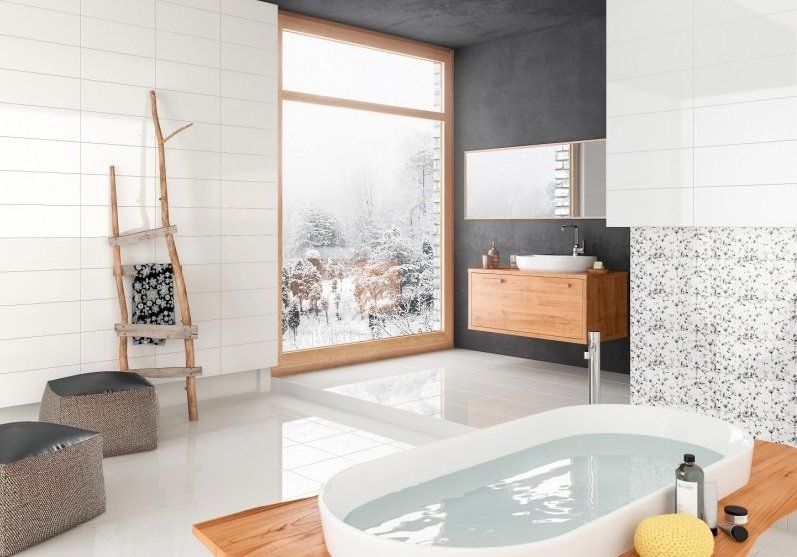 Фото интерьеров комнат, облицованных керамической плиткой Пенне (Penne) от производителя Опочно (Opoczno).