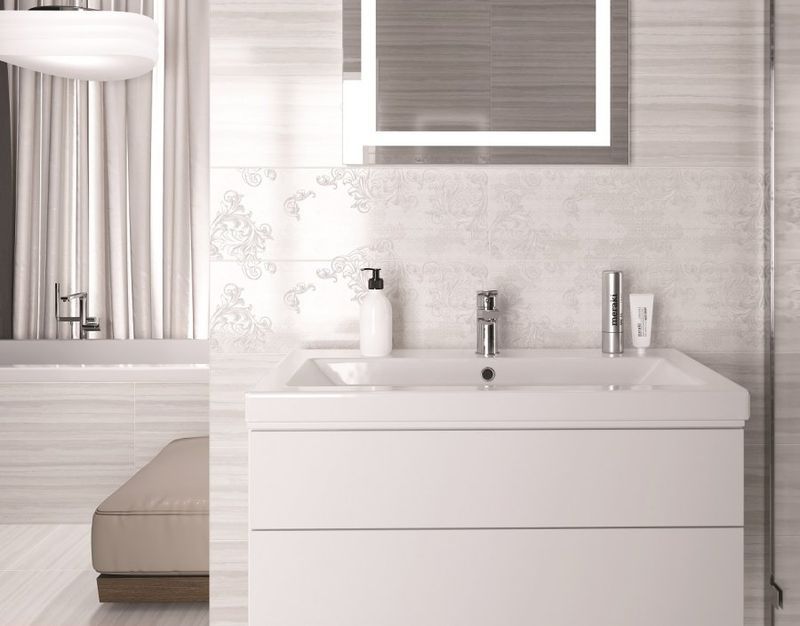 Фото интерьеров комнат, облицованных керамической плиткой Greys от производителя Церсанит (Сersanit).