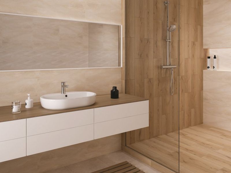 Фото интерьеров комнат, облицованных керамической плиткой Siena от производителя Церсанит (Сersanit).