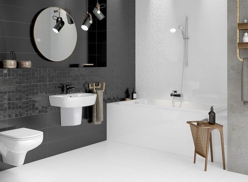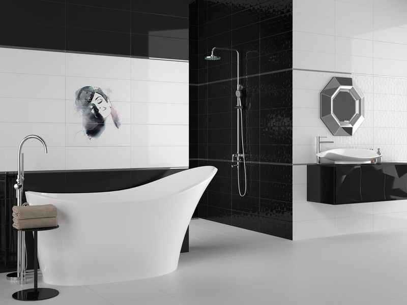 Фото интерьеров комнат, облицованных керамической плиткой Simple art от производителя Церсанит (Сersanit).