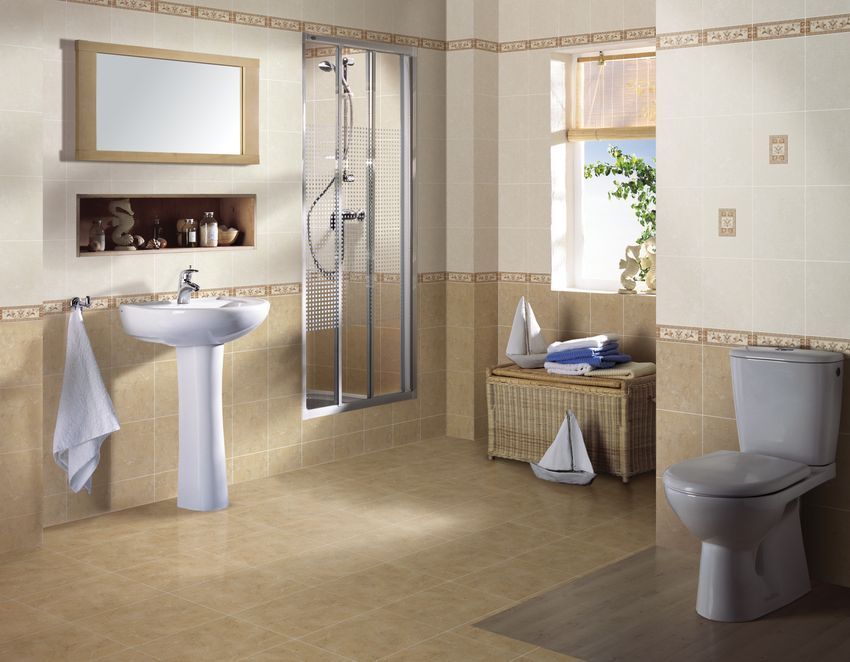Плитка выполнена в теплых кремовых тонах: бежевом и светло-бежевом. Прекрасным дополнением коллекции служит декор с рисунком.