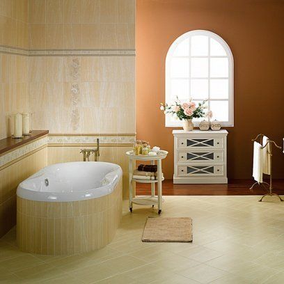 Фото интерьеров комнат, облицованных керамической плиткой Травертино (Trawertino) от производителя Церсанит (Сersanit).