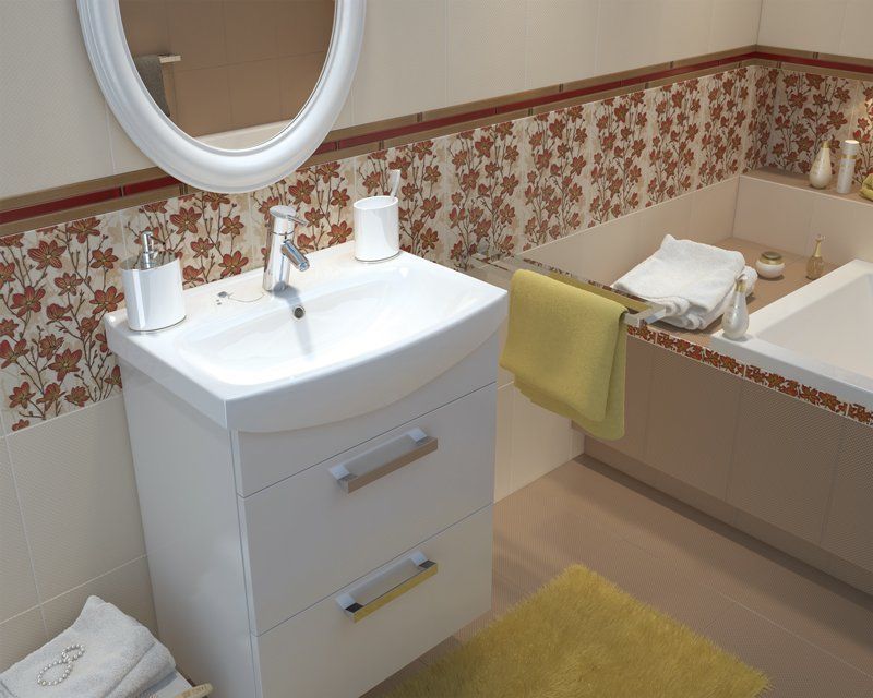 Фото интерьеров комнат, облицованных керамической плиткой Лаура (Laura) Цветы от производителя Церсанит (Сersanit).