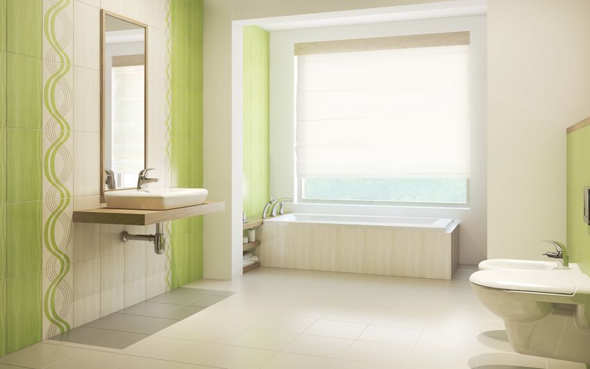 Оформлена в светло-бежевом и травянисто-зелёном тонах, эта плитка дарит ощущение свежести и гармонии, становясь прекрасным решением для дома в эко стиле.