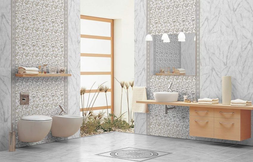 Фото интерьеров комнат, облицованных керамической плиткой Каррара (Carrara) Серый от производителя Церсанит (Сersanit).