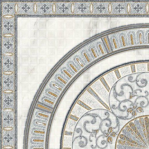 Плитка выполнена в классическом стиле и содержит оттенки бежевого и серого цвета. Изюминкой коллекции является прекрасное панно с узором, состоящее из четырех элементов.