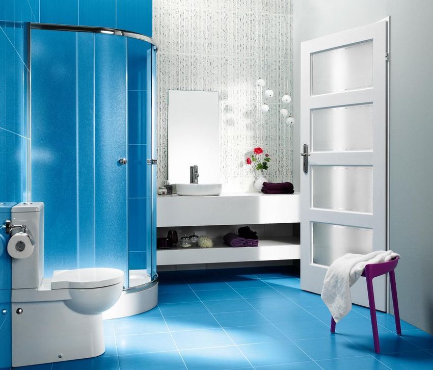 Фото интерьеров комнат, облицованных керамической плиткой Атола (Atola) Блу от производителя Церсанит (Сersanit).
