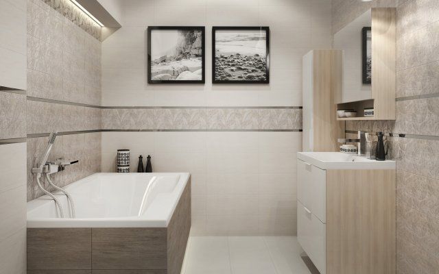 Фото интерьеров комнат, облицованных керамической плиткой Ливи (Livi) Крем от производителя Церсанит (Сersanit).