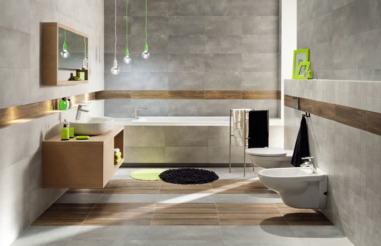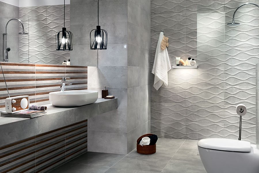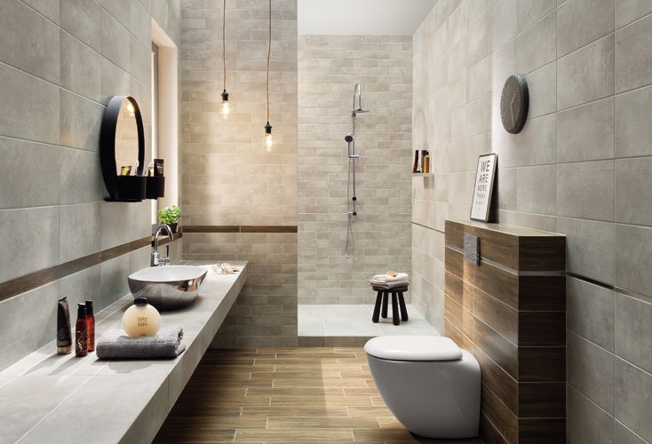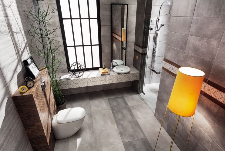 Ничего лишнего, только плитка «под бетон» как превосходный «холст» или фон для чего-то более яркого и выразительного. Плитка Минимал предложена в двух оттенках серого. Выглядят «бетонные поверхности» довольно эстетично, ведь они совершенно лишены недостатков бетона, неприхотливы в уходе, долговечны.