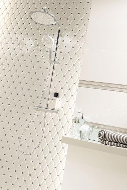 Фото интерьеров комнат, облицованных керамической плиткой Абиссо Белый (Abisso White) от производителя Тубадзин (Tubadzin).