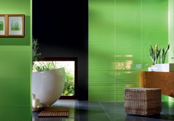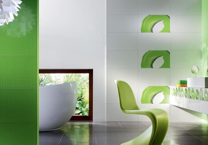 Фото интерьеров комнат, облицованных керамической плиткой Зеленый (Colour Green) от производителя Тубадзин (Tubadzin).
