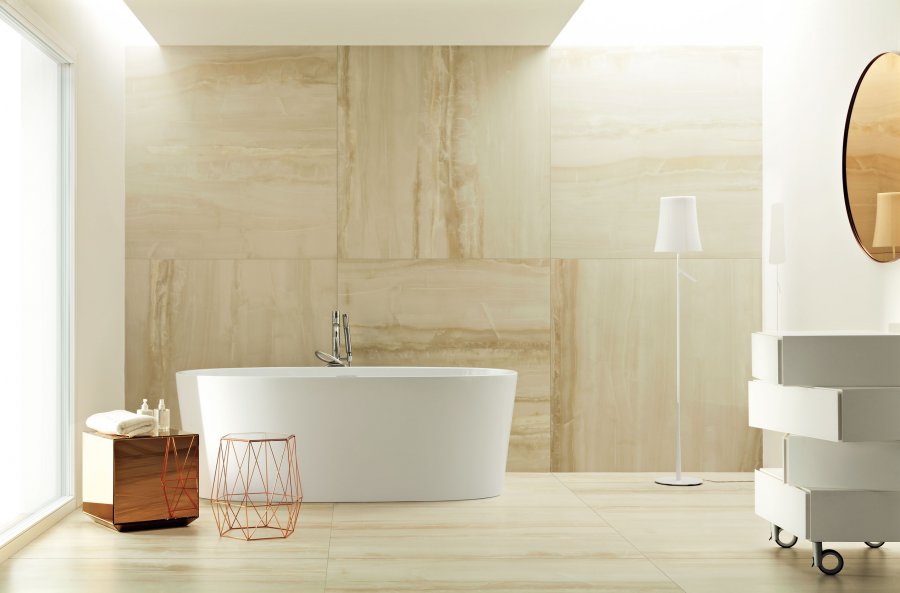 Фото интерьеров комнат, облицованных керамической плиткой Онис (Onis) от производителя Тубадзин (Tubadzin).